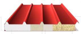 Сэндвич-панели — это современный многослойный строительный материал, состоящий из двух металлических (чаще всего оцинкованных с полимерным покрытием) или иных облицовочных листов и утеплителя, расположенного между ними.